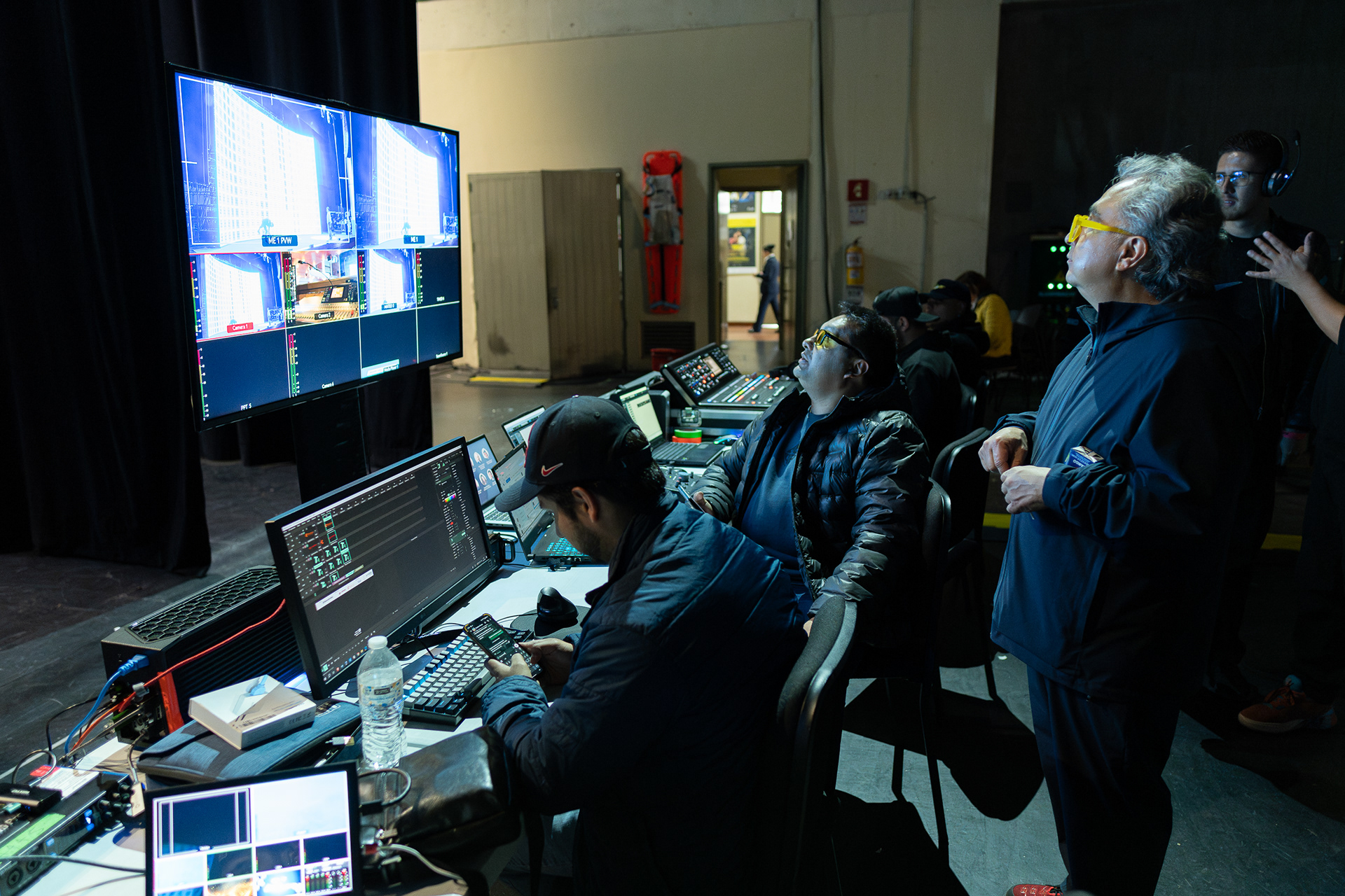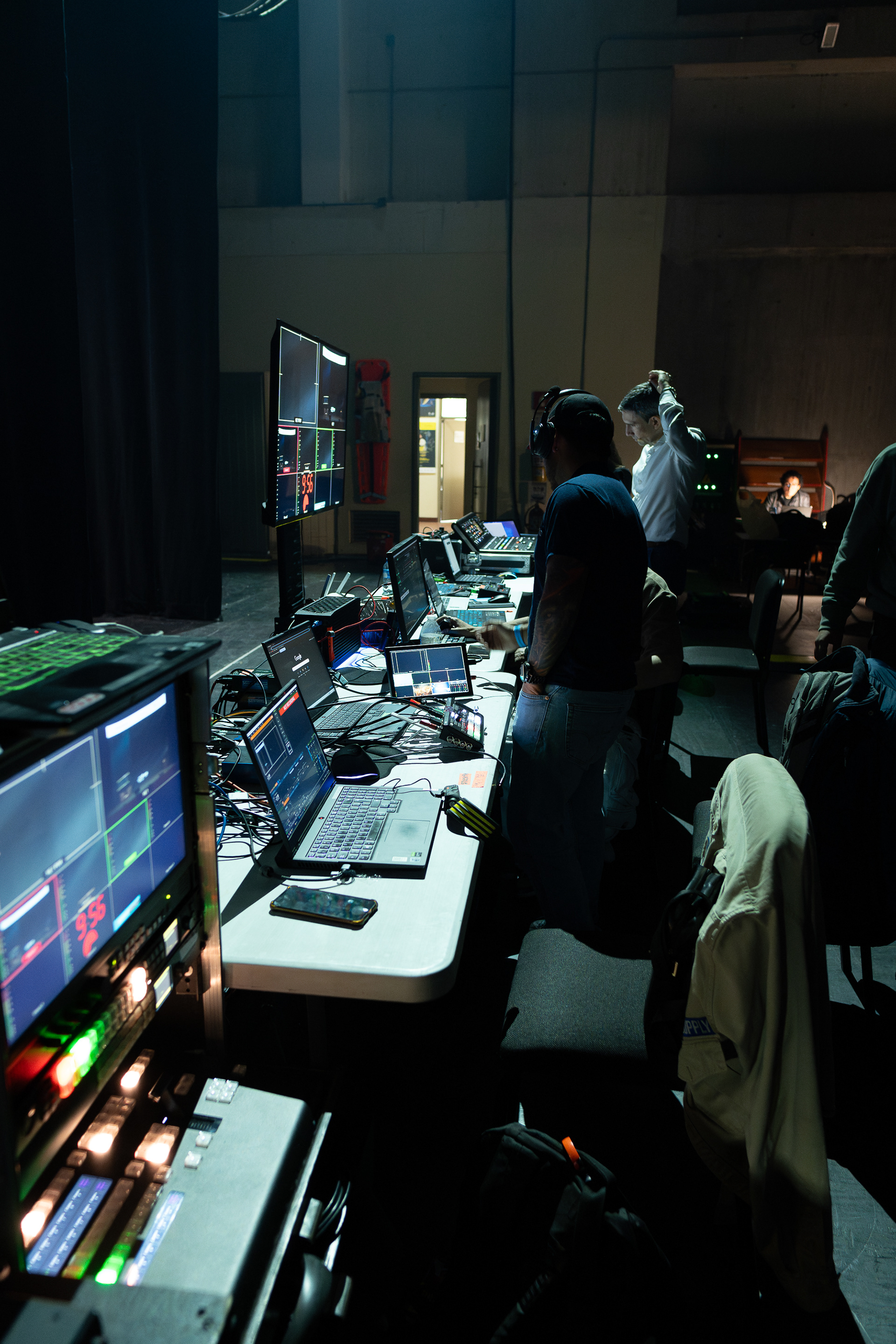 Fotografía de producción y montaje de eventos en Colombia. Registro visual del montaje técnico, escenografía, iluminación y logística, mostrando el trabajo detrás de cada evento.